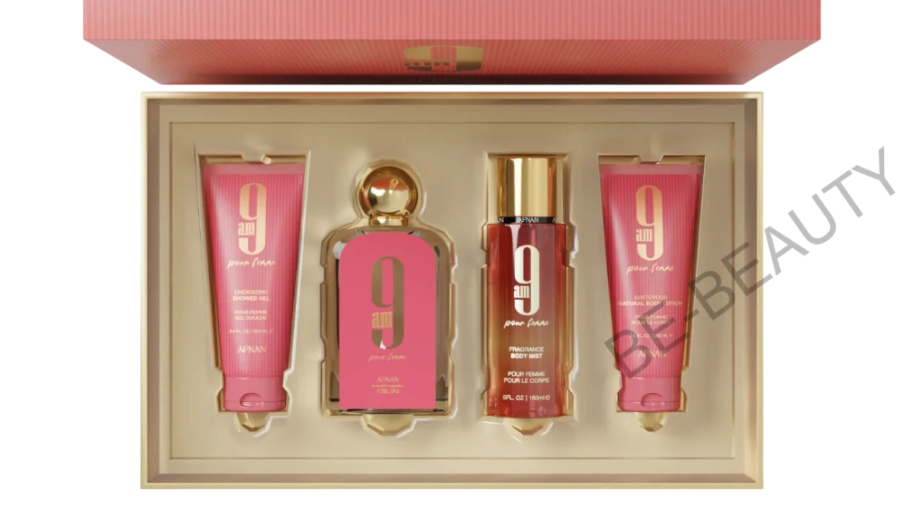 Afnan 9AM Pour Femme - EDP 100 ml + sprchový gel 100 ml + tělový závoj 150 ml + tělové mléko 100 ml