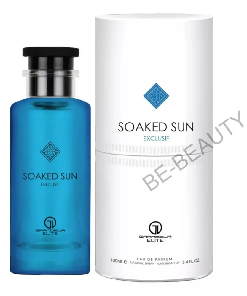 Soaked Sun Exclusif od značky Grandeur je citrusovo-korenená parfumovaná voda pre mužov aj ženy. Zahaľte sa do žiary slnečných lúčov kedykoľvek a kdekoľvek s vôňou Soaked Sun Exclusif od značky Grandeur. Táto jedinečná vôňa vás prenesie na pláže s jemným pieskom a teplým morským vánkom, kde je každý okamih naplnený radosťou a bezstarostnosťou. Iskrivý citrusový mix zrelého sicílskeho pomaranča, kalábrijského bergamotu a citróna prestúpi pikantné spojenie zázvoru s cejlónskou škoricou a elegantným tuniským neroli. Guajakové drevo v základe vône dopĺňajú ambroxan, čínsky čierny čaj a olibanum.