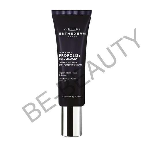 Dvojitý účinok INTENSIVE PROPOLIS+ Krému pre nedokonalosti pleti s kyselinou ferulovou pôsobí na nedokonalosti pleti, ako mastná pleť, vyrážky a čierne bodky, ale aj na známky starnutia. Rad je preto dokonalou kombináciou starostlivosti o problematickú pleť proti akné a starnutiu. Príjemná, zamatovo jemná, nemastná textúra ľahkého krému sa okamžite vstrebáva a zanecháva pokožku príjemne prevoňanú kvetinovou vôňou s tónmi vodných bielych kvetov a ryže. Výsledkom je okamžité zmatnenie, zjednotenie, vyhladenie mikroreliéfu a nedokonalostí a stiahnutie pórov. Navyše sú vyhladené mimické vrásky.