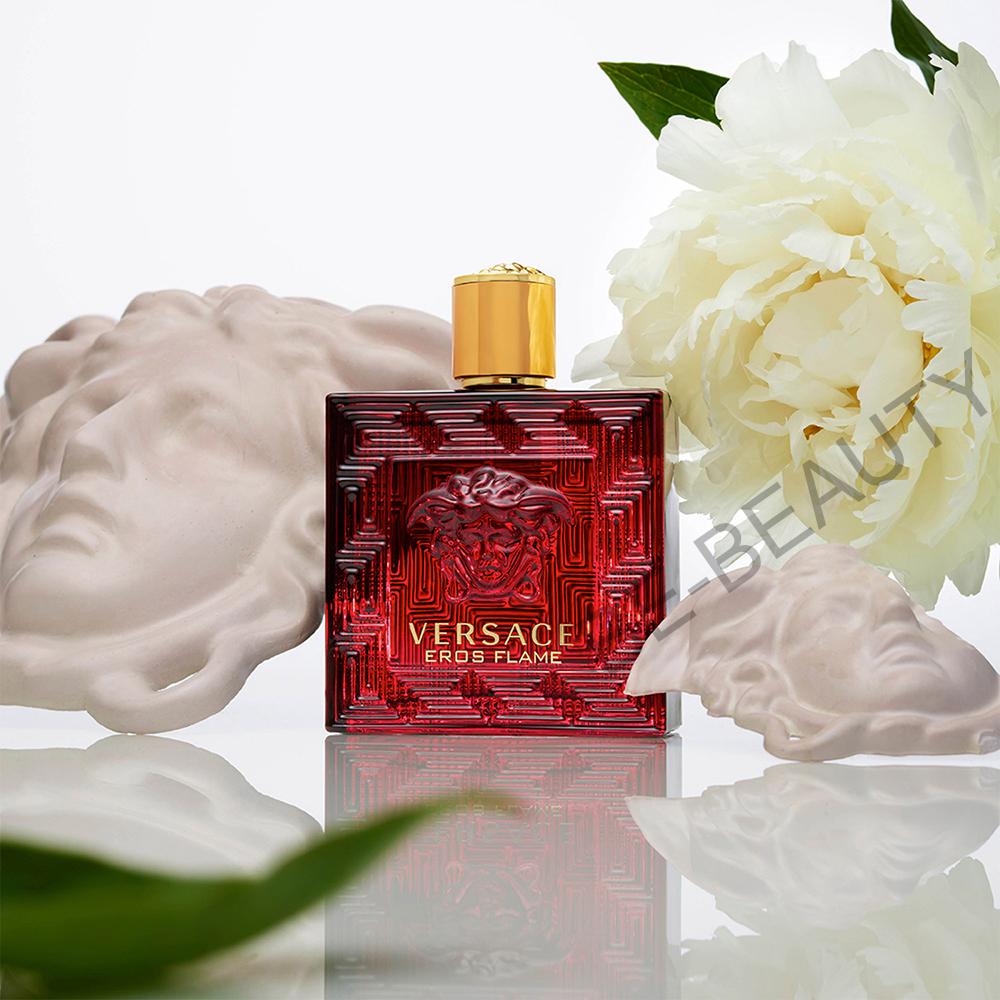 Eros Flame je drevito-korenená vôňa pre mužov. Hlava sa skladá z citróna, mandarínky, citrusu chinotto, rozmarínu a čierneho korenia. Srdce tvoria ruže, pelargónie a korenie. Základ kompozície uzatvára céder, pačuli, fazuľa tonka, sladká vanilka, santalové drevo a dubový mach.